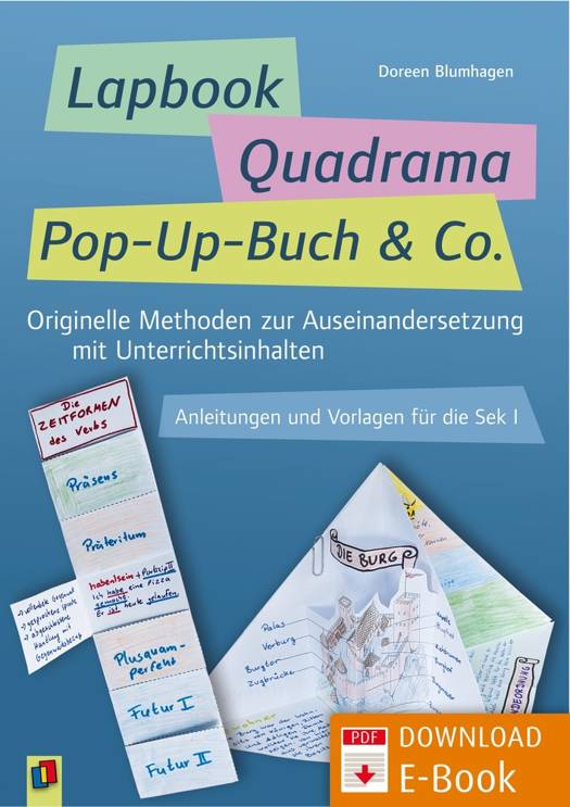 Unterrichtsmaterial und Methoden für Lehrer und Lehrerinnen an weiterführenden Schulen für alle Fächer, Klasse 5-10 +++Ein Quadrama in Geschichte, ein Pop-up-Buch in Bio, ein Buddy Book in Mathe und ein Lapbook in Musik - die vielseitigen Formen fassen jeden Lerninhalt anschaulich zusammen und helfen den Schülern und Schülerinnen, die Themen, die sie im Unterricht bearbeiten, besser zu durchdringen, strukturiert zu dokumentieren und adressatengerecht zu präsentieren. Die fertigen Exemplare wiederum eignen sich hervorragend für das Wiederholen des Lernstoffs. Entgegen allen Vorurteilen ist die Arbeit mit den verschiedenen Methoden nicht aufwändig, dafür aber extrem lohnenswert. Denn die Jugendlichen werden motiviert, sich die Lerninhalte aktiv anzueignen, wo ihnen sonst nur Arbeitsblätter "müde" Antworten entlocken.Wählen Sie zwischen Lapbook, Buddy Book, Quadrama, Pop-up-Buch, Memo Flip u. a. die für Ihren Unterrichtsinhalt passende Methode aus und lassen Sie die Lernenden erleben, wie der Inhalt mithilfe der jeweiligen Methode unterstützt und transportiert wird.Und damit Sie die Umsetzung im Unterricht nicht viel Mühe kostet und Sie sofort loslegen können, liefern Buch und Begleit-Download ausführliche Schritt-für-Schritt-Anleitungen, Fotos von Beispielmodellen und zahlreiche Praxistipps sowie alle nötigen Vorlagen - auch editierbar!