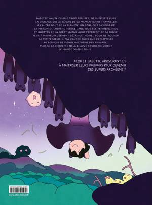Babette, haute comme trois pommes, ne supporte plus la distance qui la sépare de sa maman partie travailler à l'autre bout de la planète. Un soir, elle s'enfuit de la maison et cherche refuge dans tous les terriers, nids et grottes et la forêt. Quand Aldo s'aperçoit de sa fugue, il fait malheureusement déjà nuit noire... Pour retrouver sa petite soeur, il n'a d'autre choix que d'en appeler au pouvoir de la vision nocturne des animaux ! Mais ni la chouette ni la chauve-souris ne voient le monde comme nous...