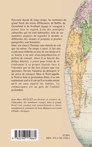 Parcourir durant de longs temps les territoires du grand Nord, des terres d'Ellesmere, de Baffin, du Groenland et du Svalbard engage le voyageur à porter loin le regard. Loin des pratiques culturelles qui lui sont habituelles, loin de ses manières acquises de regarder le monde, l'homme sans chemin ne voit que lui-même et peut réfléchir au sens de son destin. Le Nord appelle le Nord et, dans sa profondeur d'être, il sait qu'il reviendra autant qu'il en aura épuisé les limites. La connaissance est au prix de l'infinie profondeur.