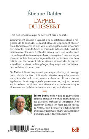 Il est des rencontres qui ne se vivent qu’au désert. Couramment associé à la mort, la désolation, et donc l’angoisse de la solitude, le désert attire cependant de plus en plus. Paradoxalement, nos villes surpeuplées sont devenues pour beaucoup de véritables déserts qui engendrent dépression et angoisse. Seuls au milieu de la foule et du brouhaha, les citadins vivent les uns à côté des autres, dans une ignorance mutuelle parfois dramatique.Aussi ceux qui ont une soif aiguë d’amour ont-ils tendance aujourd’hui à partir à sa recherche dans des lieux retirés, d’une certaine manière, ils partent « au désert », dans un lieu qui les conduira au lieu intérieur de leur cœur. De Moïse à Jésus en passant par les prophètes, cet ouvrage nous relate la tradition biblique du désert. Il nous donne également le témoignage de personnes comme vous et moi qui, un jour, ont osé sortir de leur quotidien pour vivre un temps cette expérience d’absolu. Une aventure intérieure dont on ne sort pas indemne…