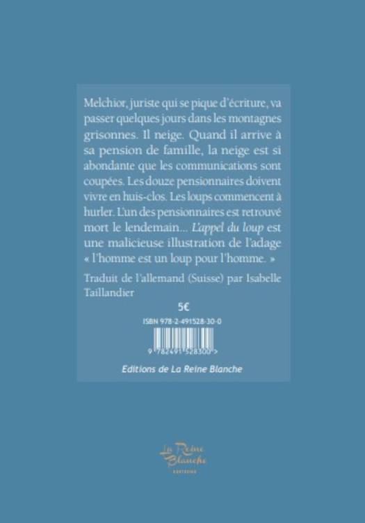 Melchior, juriste qui se pique d’écriture, va passer quelques jours dans les montagnes grisonnes en quête d’inspiration. Il neige. Quand il arrive à sa pension de famille, la neige est si abondante que les communications sont coupées. Les douze pensionnaires doivent vivre en huis-clos. Les loups commencent à hurler. L’un des pensionnaires est retrouvé mort le lendemain... L’appel du loup est une malicieuse illustration de l’adage « l’homme est un loup pour l’homme. »