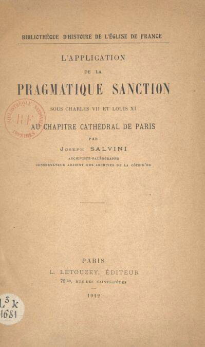 4. L'application de la Pragmatique sanction sous Charles VII et Louis XI au Chapitre cathédral de Paris