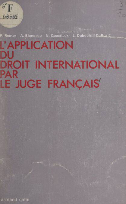 L'OUVRAGE De tout temps, l'application du droit international par le juge interne a retenu l'attention des spécialistes. De nos jours cependant, avec en particulier, la multiplicité des organismes internationaux, l'intérêt théorique du problème est sans doute dépassé par son importance pratique. La controverse doctrinale entre le dualisme et le monisme semble avoir été tranchée, apparemment, pour ce qui est de la France, en faveur du second, par l'article 55 de la Constitution reconnaissant aux traités ou accords régulièrement ratifiés ou approuvés, dès leur publication, une autorité supérieure a celle des lois ; la question est alors de savoir comment le juge français applique cette prescription ou est amené parfois - comme certaines décisions de jurisprudence pourraient le laisser supposer - à ne pas l'appliquer. Dans ce dessein, la Société française pour le Droit international a choisi ce sujet comme thème de réflexion pour ses journées annuelles de 1970. On constatera que les rapports présentés à cette occasion ont été confiés aussi bien à des professeurs, traditionnellement soucieux de synthétiser ces problèmes, qu'à de hauts magistrats ayant pris une part personnelle à l'orientation actuelle de la jurisprudence. La conséquence de leurs conclusions est dès lors un gage de leur valeur. LE PUBLIC Etudiants en droit, juristes et fonctionnaires internationaux, magistrats. LES AUTEURS P. Reuter, Professeur à l'Université de Paris II, A. Blondeau, Avocat général à la Cour de Cassation, N. Questiaux, Maître des Requêtes au Conseil d'Etat, L. Dubouis, Professeur à l'Université de Grenoble, D. Ruzié, Professeur à l'Université de Paris X.