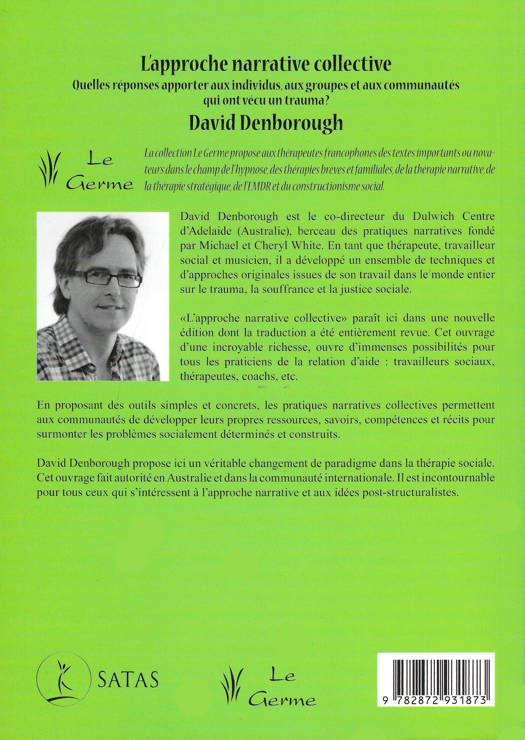 David Denborough est le co-directeur du Dulwich Centre d'Adelaide (Australie), berceau des pratiques narratives fondé par Michael et Cheryl White. En tant que thérapeute, travailleur social et musicien, il a développé un ensemble de techniques et d'approches originales issues de son travail dans le monde entier sur le trauma, la souffrance et la justice sociale. "L'approche narrative collective" paraît ici dans une nouvelle édition dont la traduction a été entièrement revue. Cet ouvrage d'une incroyable richesse, ouvre d'immenses possibilités pour tous les praticiens de la relation d'aide : travailleurs sociaux, thérapeutes, coachs, etc. En proposant des outils simples et concrets, les pratiques narratives collectives permettent aux communautés de développer leurs propres ressources, savoirs, compétences et récits pour surmonter les problèmes socialement déterminés et construits. David Denborough propose ici un véritable changement de paradigme dans la thérapie sociale. Cet ouvrage fait autorité en Australie et dans la communauté internationale. Il est incontournable pour tous ceux qui s'intéressent à l'approche narrative et aux idées post-structuralistes.