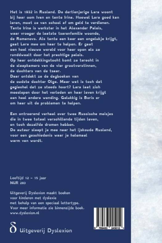 Het is 1932 in Rusland. De dertienjarige Lara woont bij haar oom Ivan en tante Irina. Hoewel Lara goed kan leren, moet ze van school af om geld te verdienen. Tante Irina is werkster in het Alexander Paleis, waar vroeger de laatste tsarenfamilie woonde, de Romanovs. Als tante een keer een ongelukje krijgt, gaat Lara mee om haar te helpen. Er gaat een heel nieuwe wereld voor haar open als ze ronddwaalt door het prachtige paleis. Op haar ontdekkingstocht komt ze terecht in de slaapkamers van de vier grootvorstinnen, de dochters van de tsaar. Daar ontdekt ze de dagboeken van de oudste dochter Olga. Maar wat is toch dat gegiechel dat ze steeds hoort? Lara laat zich meeslepen door het verleden en haar leven krijgt een heel andere wending. Gelukkig is Boris er om haar uit de problemen te helpen.
