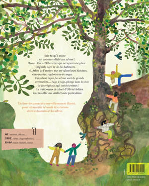 Sais-tu qu'il existe un concours dédié aux arbres ? Eh oui ! On y célèbre ceux qui occupent une place originale dans la vie des habitants. « L'Arbre de l'année » met en valeur leurs histoires, émouvantes, rigolotes ou étranges. Car, à leur façon, les arbres sont de grands aventuriers... Page à page, plonge dans le récit de ces végétaux qui ont été primés ! Le trait joyeux et coloré d'Olivia Holden leur insuffle une vitalité toute particulière. Un livre-documentaire merveilleusement illustré, pour retranscrire la beauté des relations entre les humains et les arbres.