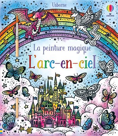 Des décors enchantés, des fées, des sirènes, des dragons et des licornes revêtent les couleurs de l'arc-en-ciel lorsqu'on passe le pinceau trempé dans un peu d'eau sur les illustrations en noir et blanc de ce livre de coloriage magique.