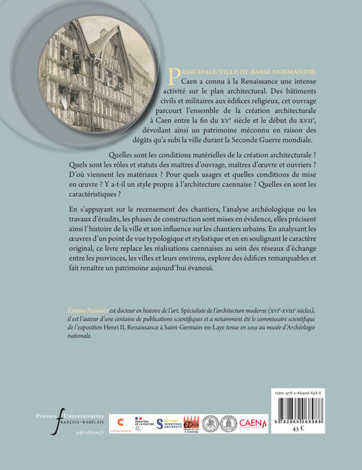 Principale ville de basse Normandie, Caen a connu à la Renaissance une intense activité sur le plan architectural. Des bâtiments civils et militaires aux édifices religieux, cet ouvrage parcourt l’ensemble de la création architecturale à Caen entre la fin du XVe siècle et le début du XVIIe, dévoilant ainsi un patrimoine méconnu en raison des dégâts qu’a subi la ville durant la Seconde Guerre mondiale. Quelles sont les conditions matérielles de la création architecturale ? Quels sont les rôles et statuts des maîtres d’ouvrage, maîtres d’oeuvre et ouvriers ? D’où viennent les matériaux ? Pour quels usages et quelles conditions de mise en oeuvre ? Y a-t-il un style propre à l’architecture caennaise ? Quelles en sont les caractéristiques ?