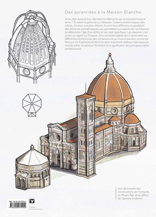 As-tu déjà observeÌ avec attention les bâtiments qui se trouvaient autour de toi ? Ils valent la peine de s’y intéresser. Certains existent depuis des siècles, d’autres sont encore récents. Ils sont tous différents et possèdent des éléments caractéristiques, qui permettent aux experts de l’architecture de déterminer l’âge d’un édifice et son style spécifique. Les observer, c’est porter un regard sur l’histoire. Si tu souhaites apprendre aÌ reconnaître les différentes architectures des constructions qui nous entourent, ce livre est fait pour toi. Il présente et décrit les plus importants édifices historiques du monde entier, et explique l’évolution et la signification des principaux styles architecturaux. <br /> Des monuments anciens aux structures plus modernes, ce livre captivant propose d’explorer le monde fascinant de l'architecture pour apprendre à décoder les différents styles en voyageant à travers l’histoire.