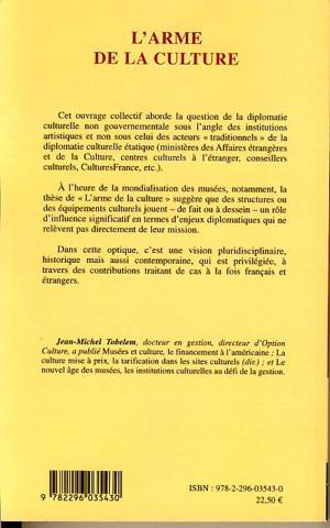 Cet ouvrage collectif aborde la question de la diplomatie culturelle non gouvernementale sous l'angle des institutions artistiques et non sous celui des acteurs "traditionnels" de la diplomatie culturelle étatique. A l'heure de la mondialisation des musées, notamment, la thèse de "l'arme de la culture" suggère que des structures ou des équipements culturels jouent un rôle d'influence significatif en termes d'enjeux diplomatiques qui ne relèvent pas directement de leur missions.