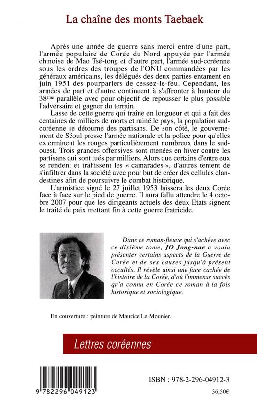 Dans ce roman-fleuve qui s'achève avec ce dixième tome, JO Jong-nae a voulu présenter certains aspects de la Guerre de Corée et de ses causes jusqu'à présent occultés. Il révèle ainsi une face cachée de l'histoire de la Corée, d'où l'immense succès qu'a connu en Corée ce roman à la fois historique et sociologique.