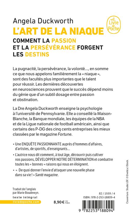 Le Dr Angela Duckworth enseigne la psychologie à l’université de Pennsylvanie. Elle a conseillé la Maison-Blanche, la Banque mondiale, les équipes de la NBA et de la Ligue nationale de football américain, ainsi que des P-DG des cinq cents entreprises les mieux classées par le magazine Fortune.
