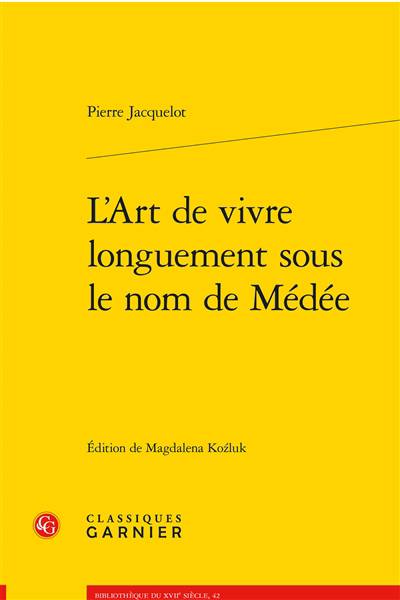 L'Art de vivre longuement sous le nom de Médée, du médecin Pierre Jacquelot, est un régime de santé publié en 1630 à Lyon et considéré durant une décennie comme le reflet du goût pour les soins du corps et de l'âme. Conservateur sur le plan des savoirs médicaux, l'auteur sut renouveler le genre du traité d'hygiène, en composant un vaste pré- ambule qui en justifie la raison d'être, en donnant à sa parole d'auteur, priorité sur le contenu scientifique, et en conférant à ce traité une forme littéraire singulière, faite d'une pittoresque mosaïque d'intertextes poétiques. Cette édition critique intéressera l'historien de la médecine, celui des mentalités et tout lecteur qui saura se délecter d'un type d'écriture curieuse depuis longtemps disparu.