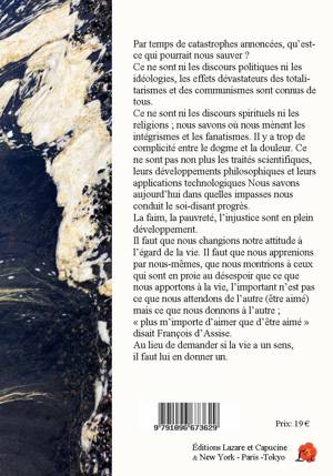Dans un esprit synthétique des différentes religions et philosophies, Jean-Yves Leloup propose un chemin pour mettre spiritualité et sagesse au cÅur des temps de bouleversements que vit le monde actuel. L'éveil des consciences, présenté comme un pont entre le passé usé et l'avenir à construire, constitue un point central de la réflexion pour sauver notre Terre-mère, une voie de guérison pour l'Humain dans le respect de la nature. Sciences, recherche, philosophies, théologie, psychologie, spiritualités, littérature, poésie: l'auteur fait surgir de nos cultures multiples une réponse bienveillante, un espoir dans le monde de de demain. Jean-Yves Leloup, philosophe et théologien, a écrit de nombreux ouvrages sur le thème de la Sagesse. Nouvelle édition revue et corrigée.