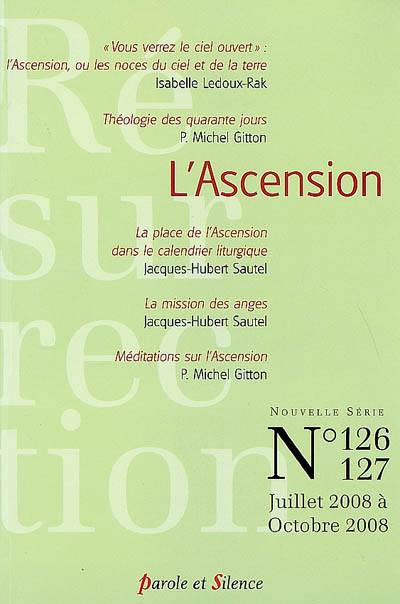 Au sommaire de ce numéro notamment : Vous verrez le ciel ouvert : l'Ascension, ou Les noces du ciel et de la terre (I. Ledoux-Rak) ; Théologie des quarante jours (P.M. Gitton) ; La place de l'Ascension dans le calendrier liturgique (J.-H. Sautel) ; La mission des anges (P.-V. Desarbres) ; Méditations sur l'Ascension (P.M. Gitton).