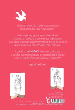 Un pendant chrétien aux cartes Pokémon : 12 cartes à colorier et à collectionner avec leur support. Bienheureux Charles d’Autriche, saint Étienne, saint Grégoire le Grand, sainte Jacinta de Fatima, saint Jean l’évangéliste, saint Kizito (Martyrs de l’Ouganda), sainte Pétronille, sainte Rose de Lima, saint Rémi, saint Thomas, sainte Victoire, Zita d’Autriche. Un conte et une catéchèse pour compléter les 12 vies de saints du livret Avec les saints vers l’Ascension et la Pentecôte.