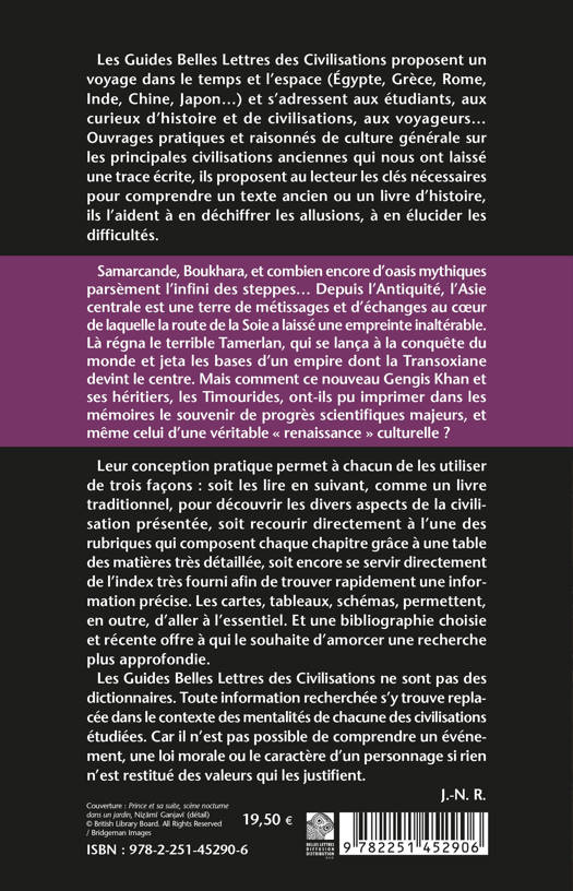 Samarcande, Boukhara, et combien encore d'oasis mythiques parsement l'infini des steppes... Depuis l'Antiquite, l'Asie centrale est une terre de metissages et d'echanges au coeur de laquelle la route de la Soie a laisse une empreinte inalterable. La regna le terrible Tamerlan, qui se lanca a la conquete du monde et jeta les bases d'un empire dont la Transoxiane devint le centre. Mais comment ce nouveau Gengis Khan et ses heritiers, les Timourides, ont-ils pu imprimer dans les memoires le souvenir de progres scientifiques majeurs, et meme celui d'une veritable renaissance culturelle ?