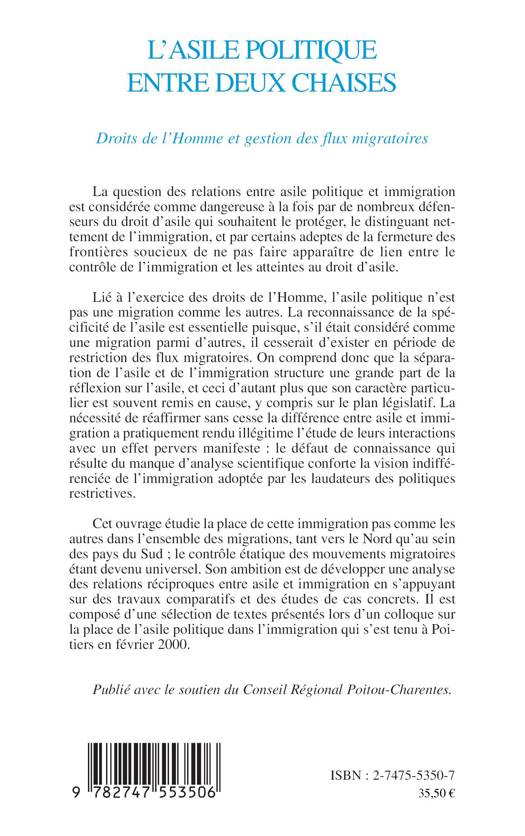 La question des relations entre l'asile politique et immigration est considérée comme dangereuse à la fois par de nombreux défenseurs du droit d'asile qui souhaitent le protéger, le distinguant nettement de l'immigration, et par certains adeptes de la fermeture des frontières soucieux de ne pas faire de lien entre le contrôle de l'immigration et les atteintes au droit d'asile. L'ambition de l'ouvrage est de développer une analyse des relations réciproques entre asile et immigration en s'appuyant sur des travaux comparatifs et des études de cas concrets.