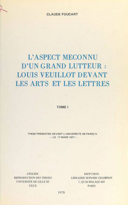 L'aspect méconnu d'un grand lutteur : Louis Veuillot devant les arts et les lettres (1) E-BOOK