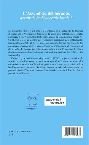 Depuis la réforme constitutionnelle de 2003, les textes en discussion devant le parlement et intéressant la vie locale n'ont pas manqué. Pour autant, la question du fonctionnement des assemblées élues et celle de leurs rapports aux exécutifs locaux ou à la technocratie locale n'ont jamais été abordées de front. Les actes de la journée d'études de l'AFDCL (Association Française du Droit des Collectivités Locales) s'articulent autour de trois thèmes : représentation et assemblées locales, délibération et assemblées locales et responsabilité et assemblées locales.