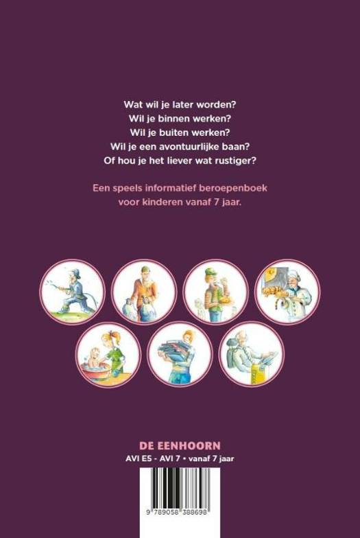 REEKS lees je slim BEROEPEN. De jonge lezer komt heel wat te weten over zeven boeiende beroepen. Telkens een paginagrote foto en duidelijke tekeningen. Met een aantrekkelijke en overzichtelijke vormgeving. Vanaf 7 jaar (AVI 7 / AVI-E5). Weet jij al wat je later wil worden? Wil je binnen werken? Of ben je graag buiten? Wil je een avontuurlijke baan? Of hou je het liever rustig? In dit boek lees je alles over zeven vaak voorkomende beroepen. Hoe vroeg staat een marktkramer op? Wat moet een brandweerman allemaal kunnen? Wat doet een juf of meester als jij naar huis bent? Interessante weetjes en leuke gesprekken.