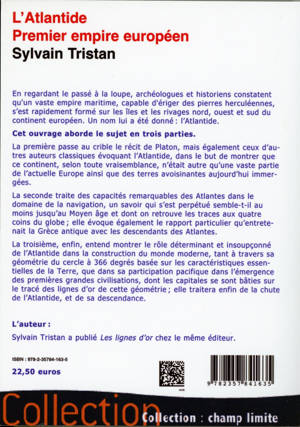 Cet ouvrage s'articule en trois parties. La première, intitulée « L'Atlantide hors de l'eau », passe au crible le récit de Platon, mais également ceux d'autres auteurs classiques évoquant l'Atlantide, dans le but de montrer que ce continent, selon toute vraisemblance, n'était autre qu'une vaste partie de l'actuelle Europe ainsi que des terres avoisinantes aujourd'hui immergées ; elle passe également en revue les mythes du monde entier, qui semblent se souvenir non seulement d'une île disparue, mais également de druides civilisateurs venus de l'Atlantide qui favorisèrent l'émergence de leurs propres civilisations. La deuxième, intitulée « Les rois des mers », traite des capacités remarquables des Atlantes dans le domaine de la navigation, un savoir qui s'est perpétué semble-t-il au moins jusqu'au Moyen Age et dont on retrouve les traces aux quatre coins du globe ; elle évoque également le rapport particulier qu'entretenait la Grèce antique avec les descendants des Atlantes. La troisième, enfin, intitulée « Maîtres du monde », entend montrer le rôle déterminant et insoupçonné de l'Atlantide dans la construction du monde moderne, tant à travers sa géométrie du cercle à 366 degrés basée sur les caractéristiques essentielles de la Terre, que dans sa participation pacifique dans l'émergence des premières grandes civilisations, dont les capitales se sont bâties sur le tracé des lignes d'or de cette géométrie ; elle traitera enfin de la chute de l'Atlantide, et de sa descendance.