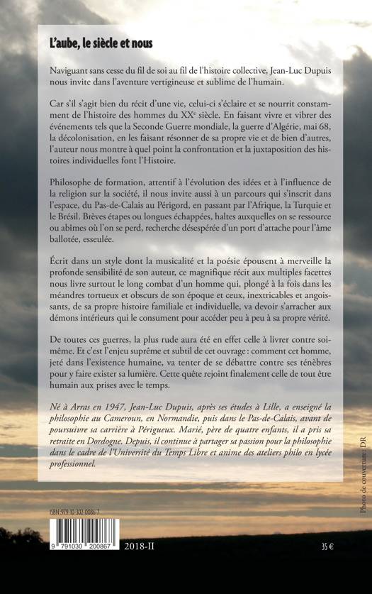 Naviguant sans cesse du fil de soi au fil de l'histoire collective, Jean Luc Dupuis nous embarque dans l'aventure vertigineuse et sublime de l'humain. Car s'il s'agit bien du récit d'une vie, celui-ci s'éclaire et se nourrit constamment de l'histoire des hommes du XXe siècle. En faisant vivre et vibrer des événements tels que la Seconde Guerre mondiale, la guerre d'Algérie, mai 68, la décolonisation, en les faisant résonner de sa propre vie et de bien d'autres, l'auteur nous montre à quel point la confrontation et la juxtaposition des histoires individuelles font l'Histoire. Philosophe de formation, attentif à l'évolution des idées et à l'influence de la religion sur la société, il nous invite aussi à un parcours qui s'inscrit dans l'espace, du Pas-de-Calais au Périgord, en passant par l'Afrique, la Turquie et le Brésil. Brèves étapes ou longues échappées, haltes auxquelles on se ressource ou abîmes où l'on se perd, recherche désespérée d'un port d'attache pour l'âme ballotée, esseulée. Écrit dans un style dont la musicalité et la poésie épousent à merveille la profonde sensibilité de son auteur, ce magnifique récit aux multiples facettes nous livre surtout le long combat d'un homme qui, plongé à la fois dans les méandres tortueux et obscurs de son époque et ceux, inextricables et angoissants de sa propre histoire familiale et individuelle, va devoir s'arracher aux démons intérieurs qui le consument, pour accéder peu à peu à sa propre vérité. De toutes ces guerres, la plu