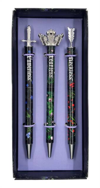 Fearless novels. Each pen features a detailed silver, die-cast metal topper including Paedyn's dagger, the resistance arrow, and the