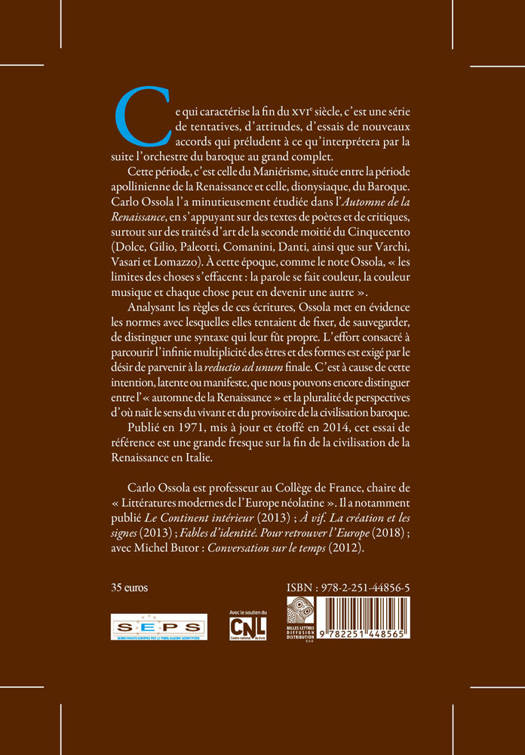 Publié en 1971, mis à jour et étoffé en 2014, cet essai de référence est une grande fresque sur la fin de la civilisation de la Renaissance en Italie.