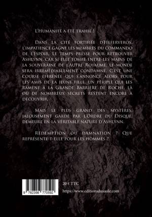 L'Humanité a été trahie ! Dans la cité fortifiée d'Heferveros, l'impatience gagne les membres du commando de l'Espoir. Le temps presse pour retrouver Ashlynn, car si elle tombe entre les mains de la souveraine de l'Autre Royaume, le monde sera irrémédiablement condamné. C'est une course effrénée qui s'annonce alors pour les amis de la jeune fille, un périple qui les ramène à la Grande Barrière de Roche, là où de nombreux secrets restent encore à découvrir. Mais le plus grand des mystères, jalousement gardé par l'Ordre du Disque, demeure en la véritable nature d'Ashlynn. Rédemption ou damnation ? Que représente-t-elle pour les hommes ?