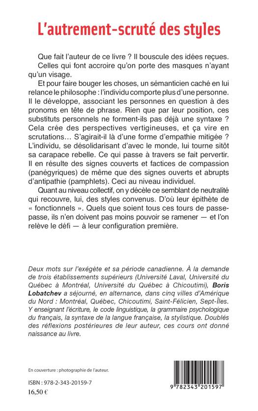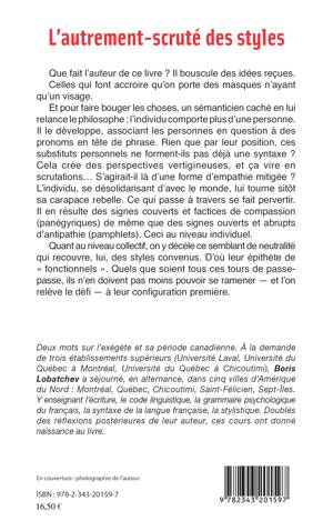 Que fait l'auteur de ce livre ? Il bouscule des idées reçues. Celles qui font accroire qu'on porte des masques n'ayant qu'un visage. Et pour faire bouger les choses, un sémanticien caché en lui relance le philosophe : l'individu comporte plus d'une personne. Il le développe, associant les personnes en question à des pronoms en tête de phrase. Rien que par leur position, ces substituts personnels ne forment-ils pas déjà une syntaxe ? Ceci au niveau individuel. Quant au niveau collectif, on y décèle ce semblant de neutralité qui recouvre, lui, des styles convenus. D'où leur épithète de « fonctionnels ». Quels que soient tous ces tours de passe-passe, ils n'en doivent pas moins pouvoir se ramener à leur configuration première.