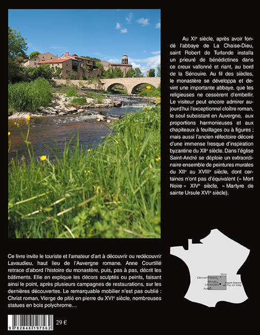 Ce livre invite le touriste et l’amateur d’art à découvrir ou redécouvrir Lavaudieu, haut lieu de l’Auvergne romane. Anne Courtillé retrace d’abord l’histoire du monastère, puis, pas à pas, décrit les bâtiments. Elle en explique les décors sculptés ou peints, faisant ainsi le point, après plusieurs campagnes de restaurations, sur les dernières découvertes. Le remarquable mobilier n’est pas oublié : Christ roman, Vierge de pitié en pierre du XVIe siècle, nombreuses statues en bois polychrome…