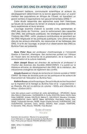 Comment bailleurs, communauté scientifique et acteurs du développement déterminent-ils la bonne approche pour un avenir meilleur des populations en Afrique de l'Ouest, où travaillent un grand nombre d'organisations non gouvernementales (ONG) ? Cette étude rassemble des approches aussi bien théoriques qu'issues de la pratique du terrain et analyse la genèse des ONG, leurs expériences et leurs terrains. L'ouvrage examine d'abord la société civile, partenariats et ONG des droits de l'homme ; puis le renforcement des capacités des ONG, des politiques publiques, les stratégies d'adaptation et l'histoire des ONG ; enfin, plusieurs contributions se penchent sur les ONG religieuses et les politiques publiques. Une ultime section discute les acteurs alternatifs, les ressources et les faiblesses des ONG. À la fin de l'ouvrage, le projet d'un observatoire des ONG au Burkina Faso est présenté.