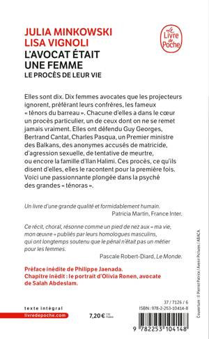Elles sont dix. Dix femmes avocates que les projecteurs ignorent, préférant leurs confrères, les fameux « ténors du barreau ». Chacune de ces avocates a, dans le cœur, un procès particulier, un de ceux dont on ne se remet jamais vraiment. Elles ont défendu Guy Georges, la famille d’Ilan Halimi, Bertrand Cantat, Charles Pasqua, un Premier ministre des Balkans ou des anonymes accusés de matricide, d’agression sexuelle, de tentative de meurtre. Ces procès, ce qu’ils disent d’elles, elles le racontent pour la première fois. Voici une passionnante plongée dans la psyché des grandes « ténoras ».