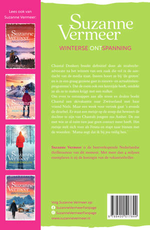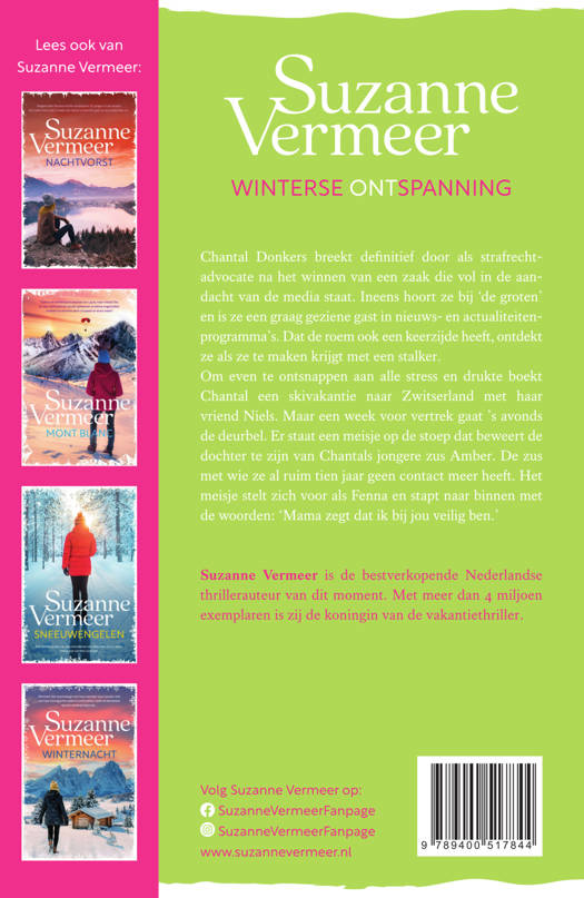 Om even te ontsnappen aan alle stress en drukte boekt Chantal een skivakantie naar Zwitserland met haar vriend Niels. Maar een week voor vertrek gaat ’s avonds de deurbel. Er staat een meisje op de stoep dat beweert de dochter te zijn van Chantals jongere zus Amber. De zus met wie ze al ruim tien jaar geen contact meer heeft. Het meisje stelt zich voor als Fenna en stapt naar binnen met de woorden: ‘Mama zegt dat ik bij jou veilig ben.’
