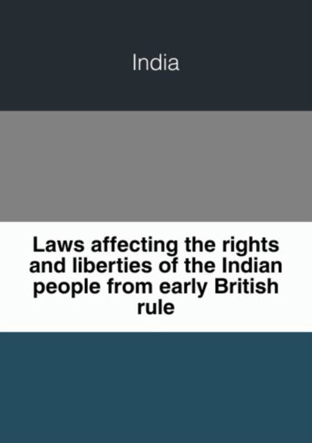 This book, "Laws affecting the rights and liberties of the Indian people from early British rule. 1", by India, is a replication of a book originally published before 1921. It has been restored by human beings, page by page, so that you may enjoy it in a form as close to the original as possible. This book was created using print-on-demand technology. Thank you for supporting classic literature.