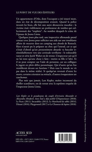 Un appartement d'Oslo, dont l'occupant a été trouvé mort, dans un état de décomposition avancée. Quand la police investit les lieux, elle fait une autre découverte macabre : la victime était visiblement un profanateur de tombes qui collectionnait des "trophées". Au nombre desquels le crâne de l'épouse de Joona Linna.