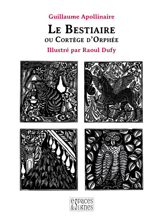 S’il est un écrivain qui consacra une partie de son œuvre à chercher comment fusionner les mots et les formes c’est bien Guillaume Apollinaire. Qui ne connaît en effet ses fameux Calligrammes ? Mais sa tentative la plus hardie est aussi la moins connue. Elle date de 1911, alors que la réputation du poète se limitait à un cercle très restreint d’artistes parisiens. Il s’agit de son premier recueil de poèmes publié, Le Bestiaire ou Cortège d’Orphée, qui est une véritable aventure artistique, réalisée en osmose avec le peintre Raoul Dufy.