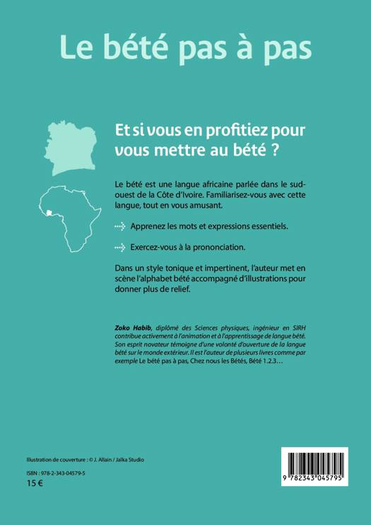 Le bété est une langue africaine parlée dans le sud-ouest de la Côte d'Ivoire. Ce livre est un outil pratique et convivial pour apprendre le bété. Il offre un panorama important de la richesse de cette langue. L'apprentissage des sons est très progressif: de la lettre à la syllabe, de la syllabe au mot, du mot à la phrase, de la phrase au texte. Dans un style tonique, l'auteur met en scène l'alphabet bété accompagné d'illustrations en couleur pour donner plus de relief.