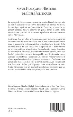 Le concept de bien commun ne cesse de susciter l'intérêt, tant au sein du milieu académique qu'auprès des acteurs du monde politique, économique, agricole ou humanitaire. Pourtant, le sens de ce concept continue de nous échapper en grande partie. Il semble donc nécessaire de proposer de nouveaux regards sur lui en se tournant vers le Moyen Âge. Au Moyen Âge en effet, le bonum commune, compris comme fin ultime de tout individu inscrit au sein d'une communauté, fonde toute la grammaire politique, et plus particulièrement à partir de la seconde moitié du xiiie siècle, sous l'impulsion de la redécouverte du corpus politique aristotélicien. Quoiqu'omniprésente, la notion est comprise et utilisée de manière extrêmement diverse, selon des finalités qui semblent souvent incompatibles avec l'universalité même qui sous-tend l'idée de commun . Le présent volume vise donc à réinterroger la notion même de bonum commune en s'intéressant aux conditions dans lesquelles celle-ci se voit mobilisée, en s'intéressant aux éventuels conflits qui surgissent dans sa confrontation avec le réel historique, tout en guettant les solutions proposées par les auteurs pour concilier théorie et pratique du bien commun.