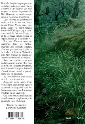 Leur histoire est une histoire vraie, nul ne le met en doute aujourd'hui. Mais sans une autre taupe, le bienheureux Boswell d'Uffington, que nous resterait-il de Brin-de-Fougère et de Rébecca sinon ce que la légende nous en a transmis ?