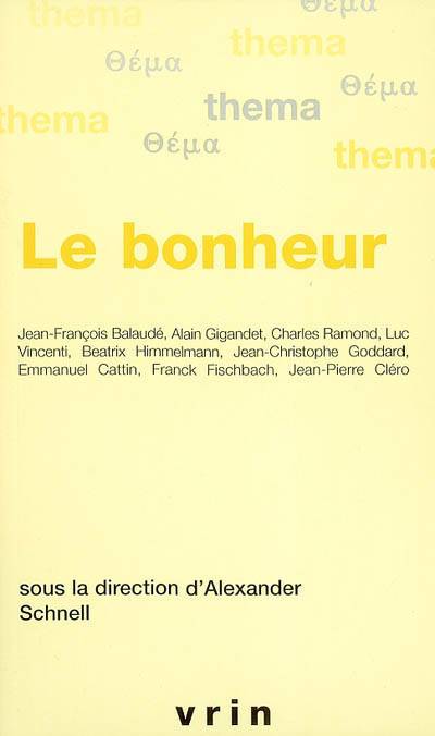 Le present volume, consacre a la notion de bonheur, s'ouvre par les contributions de J.-F. Balaude, sur Platon et Aristote, et d'A. Gigandet, sur Epicure, qui mettent en avant la distinction entre le bonheur et le plaisir. La question deja posee dans l'Antiquite de savoir si le bonheur est reserve au sage est reposee par Spinoza. On n'y repond qu'en procedant, comme le fait C. Ramond, a une analyse precise de ce qui distingue le bonheur de la beatitude, de la felicite et de la joie. Cette distinction est reprise sous la forme d'une opposition entre le bonheur singulier et le bonheur universel, chez Rousseau - comme le montre L. Vincenti -, et chez Kant, dont la conception du bonheur a trop longtemps souffert de malentendus que la contribution de B. Himmelmann vient heureusement lever. Que la notion de bonheur mette aussi en jeu les differentes positions ontologiques possibles au sein des philosophies post-kantiennes, cela ressort des reflexions de J.-Chr. Goddard sur l'etre comme angoisse (Schelling) ou l'etre comme bonheur (Fichte), d'E. Cattin qui oppose les conceptions de la serenite de Hegel et de Heidegger, et de F. Fischbach qui traite du rapport entre le bonheur et l'agir chez Marx. L'ouvrage s'acheve sur une importante etude du bonheur chez les utilitaristes, dans laquelle J.-P. Clero fait apparaitre que la theorie du bonheur et du plaisir est, notamment chez Bentham, solidaire d'une theorie du langage.