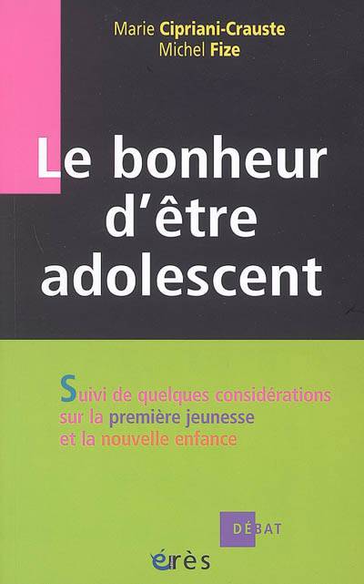 L'adolescence n'est pas cet âge de sinistre réputation qui meurtrit et handicape. Non, la majorité des adolescents ne sont ni immatures, ni violents, ni « opposants-nés », ils regorgent d'intelligences et de capacités. Au-delà des préjugés, voici un regard neuf sur l'adolescence, période de la vie définie socialement et culturellement et non biologiquement, car elle débute avant la puberté et se termine bien plus tôt qu'on ne le dit, avec l'entrée dans la première jeunesse. Marie Cipriani-Crauste, psychosociologue et anthropologue, Michel Fize, sociologue, sont chercheurs au CNRS (Centre d'ethnologie française).