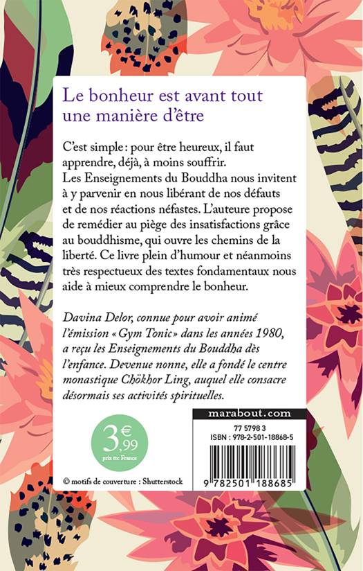 Les Enseignements du Bouddha nous invitent à y parvenir en nous libérant de nos défauts et de nos réactions néfastes. L’auteure propose de remédier au piège des insatisfactions grâce au bouddhisme, qui ouvre les chemins de la liberté. Ce livre plein d’humour et néanmoins très respectueux des textes fondamentaux nous aide à mieux comprendre le bonheur.