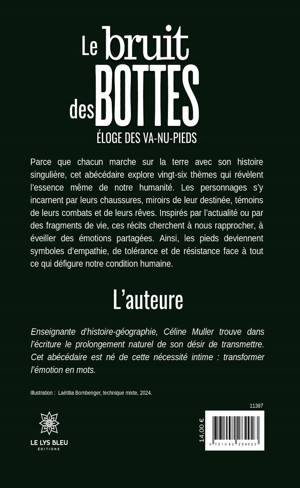 Parce que chacun marche sur la terre avec son histoire singulière, cet abécédaire explore vingt-six thèmes qui révèlent l'essence même de notre humanité. Les personnages s'y incarnent par leurs chaussures, miroirs de leur destinée, témoins de leurs combats et de leurs rêves. Inspirés par l'actualité ou par des fragments de vie, ces récits cherchent à nous rapprocher, à éveiller des émotions partagées. Ainsi, les pieds deviennent symboles d'empathie, de tolérance et de résistance face à tout ce qui défigure notre condition humaine.