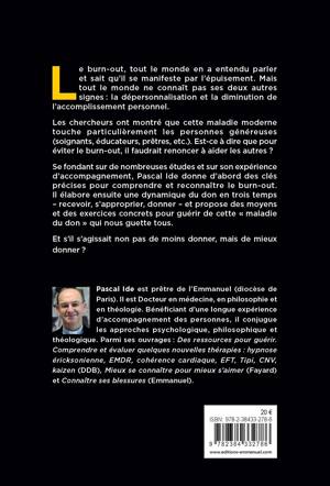 Le burn-out serait-il le mal du siècle ? Se fondant sur des études précises et de nombreux témoignages, l’auteur en propose une compréhension claire et originale : le burn-out est une maladie du don, c’est-à-dire de l’amour. Il en décrit tout d’abord les origines et les symptômes. Puis, à partir d’une dynamique du don en trois temps – recevoir, s’approprier, donner –, il propose des moyens concrets pour guérir de cette forme d’épuisement qui nous guette tous.