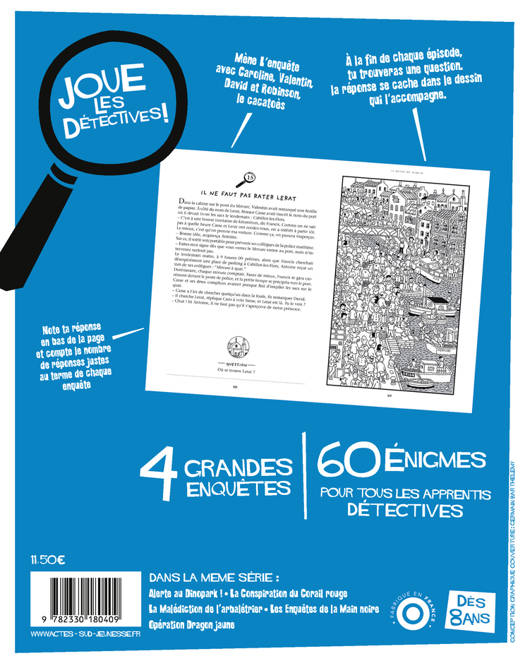 Quatre nouvelles enquêtes pour les fins limiers de l'agence Malice et Réglisse. Les jeunes détectives en herbe devront élucider des énigmes et vols en tous genres, bijoux dérobés, trafic d'antiquités et d'objets de luxe, mais aussi déchiffrer la carte d'une île mystérieuse sur un vieux parchemin... Au lecteur de résoudre avec eux les soixante énigmes, dont la réponse se cache dans l'image. Pour tous les détectives en herbe, une entrée ludique dans le monde de la lecture.