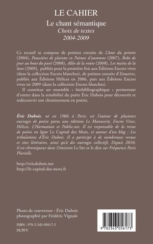 Ce recueil constitue un ensemble « biobibliographique » permettant d'entrer dans la sensibilité du poète Éric Dubois pour découvrir et redécouvrir son cheminement en poésie.