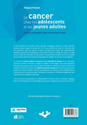 "On est jeune avant d'avoir un cancer" Ce livre présente les résultats d'une enquête sociologique menée en France pendant plusieurs années auprès de jeunes de 15 à 25 ans atteints de cancer. En décrivant leur vie quotidienne dans les services de soins, l'ouvrage rend compte des problématiques médicales, éducatives et éthiques qui structurent la prise en charge du cancer à cet âge de la vie. Elles sont abordées en trois parties : l'entrée dans la maladie, les soins et l'après-cancer, toutes riches de nombreux témoignages de malades, de proches et de soignants. La volonté de ne pas réduire ces jeunes à une identité de malade, de les considérer avant tout comme « normaux » malgré la maladie, est interrogée en lien avec l'évolution historique de la place accordée aux adolescents et aux jeunes adultes à l'hôpital, en médecine et dans la société tout entière. En cela, le livre montre qu'adapter la prise en charge à des besoins pensés comme propres aux jeunes malades influence profondément les pratiques d'accompagnement à l'autonomie, les normes éducatives, familiales et scolaires, et conditionne également l'expérience de la maladie et des soins pour ces jeunes. C'est une lecture passionnante, et indispensable à tous les acteurs et actrices impliqués dans le suivi thérapeutique et psychologique des jeunes malades dans une structure de soins. Préfacé par le sociologue Eric Gagnon.