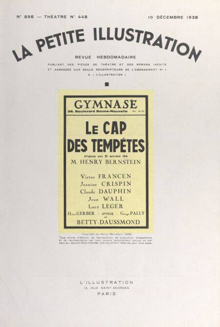 Pièce en cinq actes, représentée pour la première fois, le 14 octobre 1937 au théâtre du Gymnase
